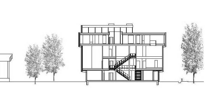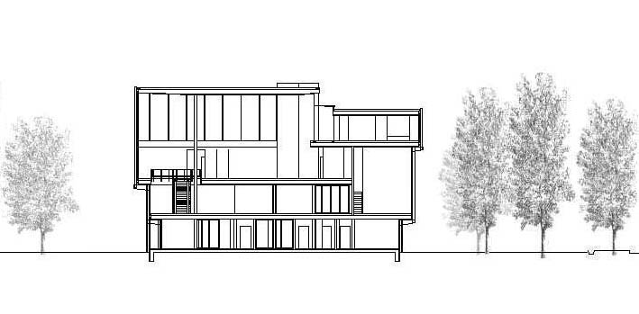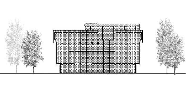 on the exterior. This tectonic composition endows the building