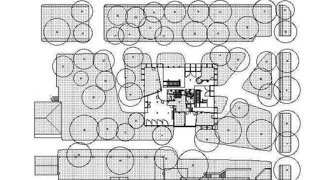 from the strict grid plan with their supporting columns not narrowly
